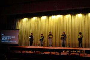 10月10日(金)、4・5年生対象に、滑川市社会福祉協議会の方による出前授業がありました。身体障害には、肢体不自由、目が見えにくい、耳が聞こえにくい等の障害があること、目の不自由な人は白い杖を持ち、地面を叩いて音や振動を感じて歩いていること等をクイズ形式で楽しく学びました。また、車いす体験では、標準型、競技用の車いすに実際に乗って、体育館に作ったコースを回ったり後ろ向きに進んだりしました。2つの車いすを乗り比べて、競技用は軽い、速い、小回りが利く、標準型は重いけれどまっすぐに進んだ等の感想を発表しました。最後に、ユニバーサルデザインについても学び、子供たちは電気のスイッチやトイレ、手洗い場等が、誰でも使いやすいようにどんどん工夫されてきていることに感心していました。そして、思いやりの気持ちをもって接していきたいと考えました。