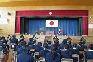 門出の言葉では、呼びかけや合唱、ギター演奏を行いました。