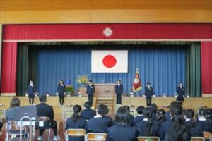 卒業生に向けて、在校生が大きな声でエールを送ったり、花束を渡したりしました。
