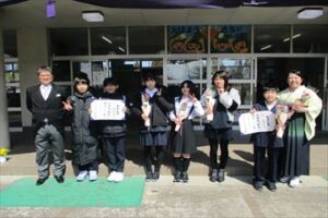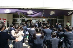 卒業式後には、児童玄関前で卒業生の見送りの会をしました。