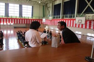 その後、児童がお別れの言葉と記念品を贈りました。